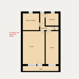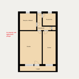 - Helyiségek: 2 különnyíló szoba, konyha étkezővel, fürdőszoba WC egyben, előszoba, kamra