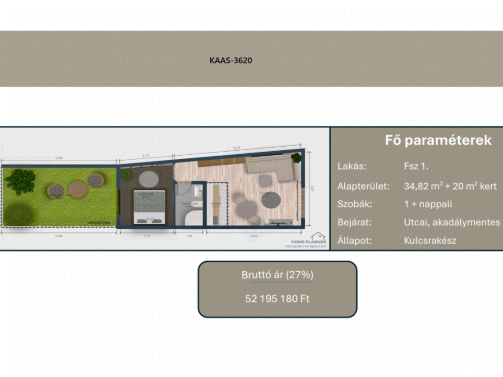 - Alapterület: 34,82 m²