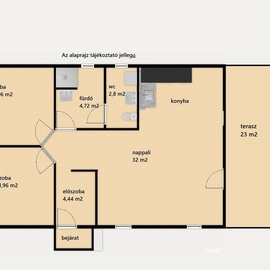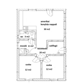 Helységek: amerikai konyhás nappali, 2 hálószoba, fürdő, wc, közlekedő, szélfogó, terasz, autóbeálló uszókapuval