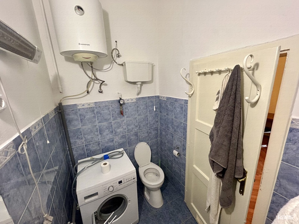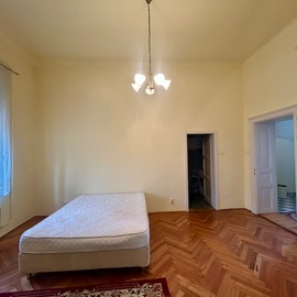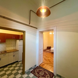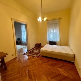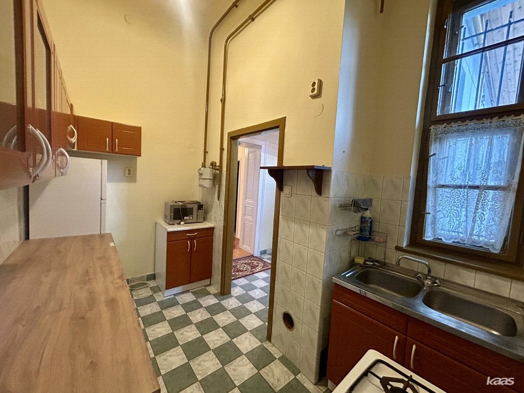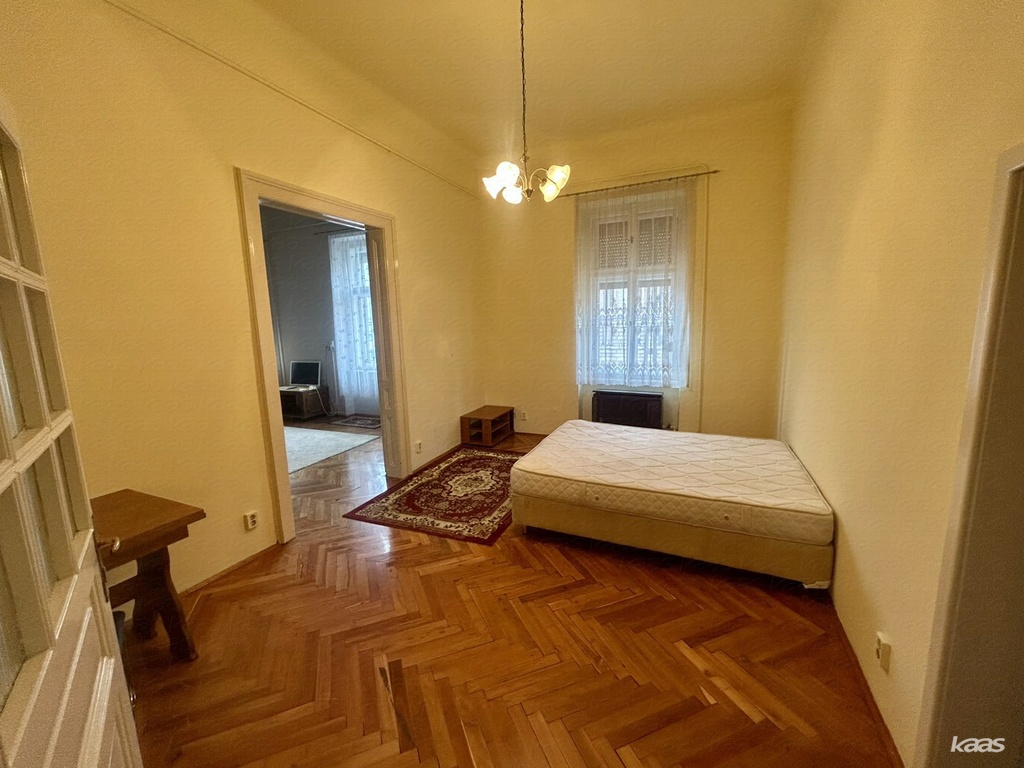 A lakás két, egymásból nyíló, jól használható szobából és külön konyhából áll. A 3,4 méteres belmagasság és a nagy ablakok kellemes, tágas érzetet adnak. A felújított gerébtokos nyílászárók hőszigetelt külső szárnyakkal nemcsak esztétikusak, hanem hatékonyan kizárják a belváros zaját is.