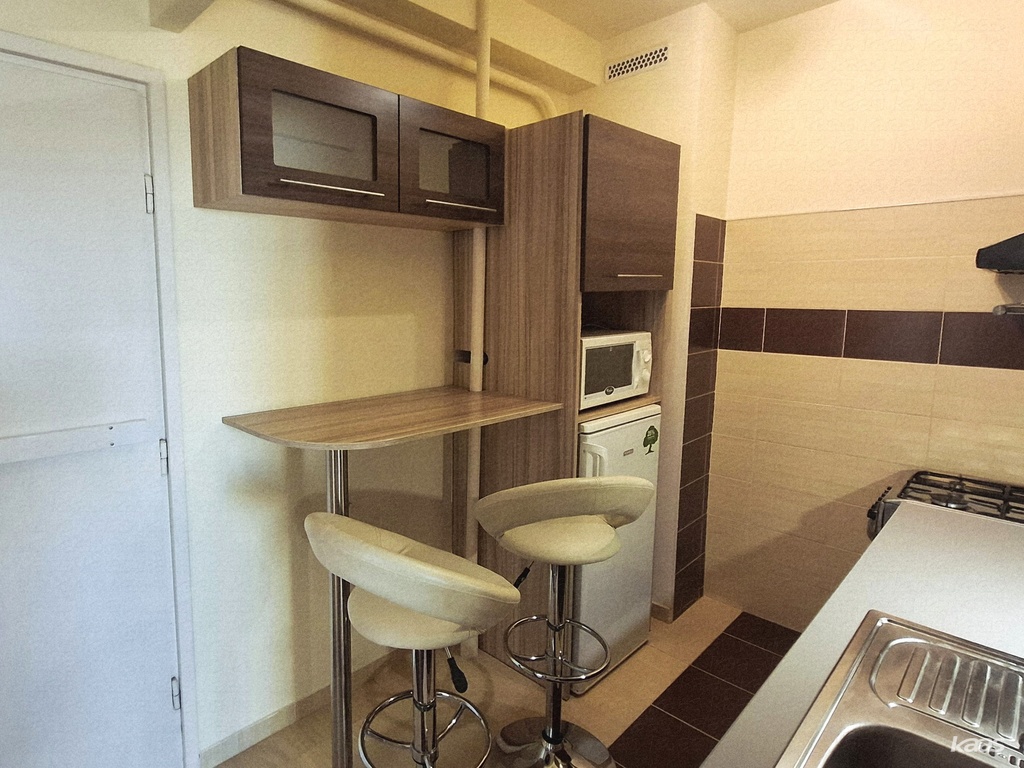- felszerelt teakonyha (hűtő, sütő, mikro)