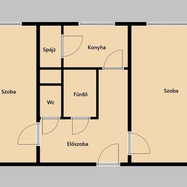 • Helyiségek: előszoba/közlekedő, fürdőszoba, wc, konyha, 2 szoba